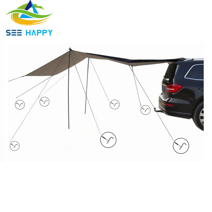 Kaip atrama ir rėmas naudojami 8 šlifuoti vinys, 8m2 ir 3m4 vėjo lynai. Konstrukcija yra stipri ir gali atlaikyti stiprų vėją ir bangas. Car Side Canopy yra pagamintas iš vandeniui atsparaus Oksfordo audinio, turinčio stabilų struktūrą, tinkantis stovyklavimui, kelionėms automobiliu ir šeimos paplūdimio vakarėliams. Didelėje pavėsinėje telpa stalai ir stovyklavietės kėdės, todėl 2-3 suaugusieji gali mėgautis poilsiu, apsaugotu nuo vėjo, saulės ir lietaus. Automobilio šoninis baldakimas taip pat turi specialiai pritaikytą privatumo tvorą, kuri leidžia užtikrinti didesnį privatumą. Šis tentas taip pat yra nešiojamas ir greitai montuojamas, jį galima lengvai sumontuoti ir pritvirtinti prie transporto priemonės šono, todėl jis yra labai praktiškas ilgų kelionių ir stovyklavimo metu. Prireikus jį galima greitai panaudoti neužimant praktiškos vietos transporto priemonėje, kaip ir jūsų mobilią lauko erdvę. Car Side Canopy yra labai praktiškas ir kokybiškas automobilio skėčio gaminys. Jis yra lengvas, nešiojamas, atsparus vėjui ir saulės spinduliams. Tinka naudoti įvairiose lauko veiklose. Jis taip pat turi grožio ir specialaus pritaikymo privalumus. Jis gali užtikrinti visapusiškesnę transporto priemonės apsaugą ir didesnį komfortą, be to, tai yra viena iš būtiniausių įrangos ilgoms kelionėms ir veiklai lauke.