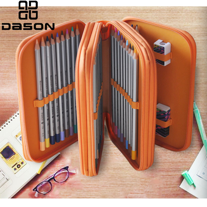 Šis trigubas pieštukų dėklas, skirtas meno, biuro, makiažo reikmenims; jame galima laikyti įvairius įrankius, tokius kaip Prismacolor / Crayola / Marco Raffine spalvotas pieštukas, akvarelinis pieštukas, gelio rašiklis, žymeklis, trintukas ar kosmetinis šepetėlis.